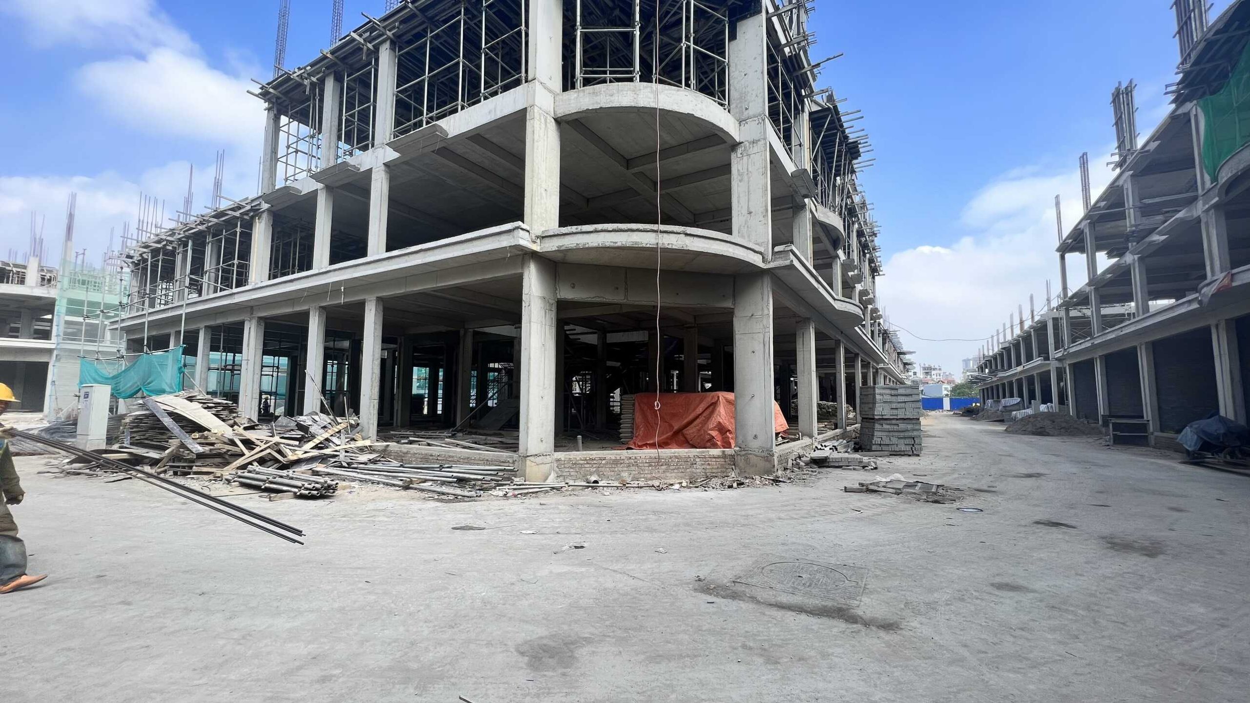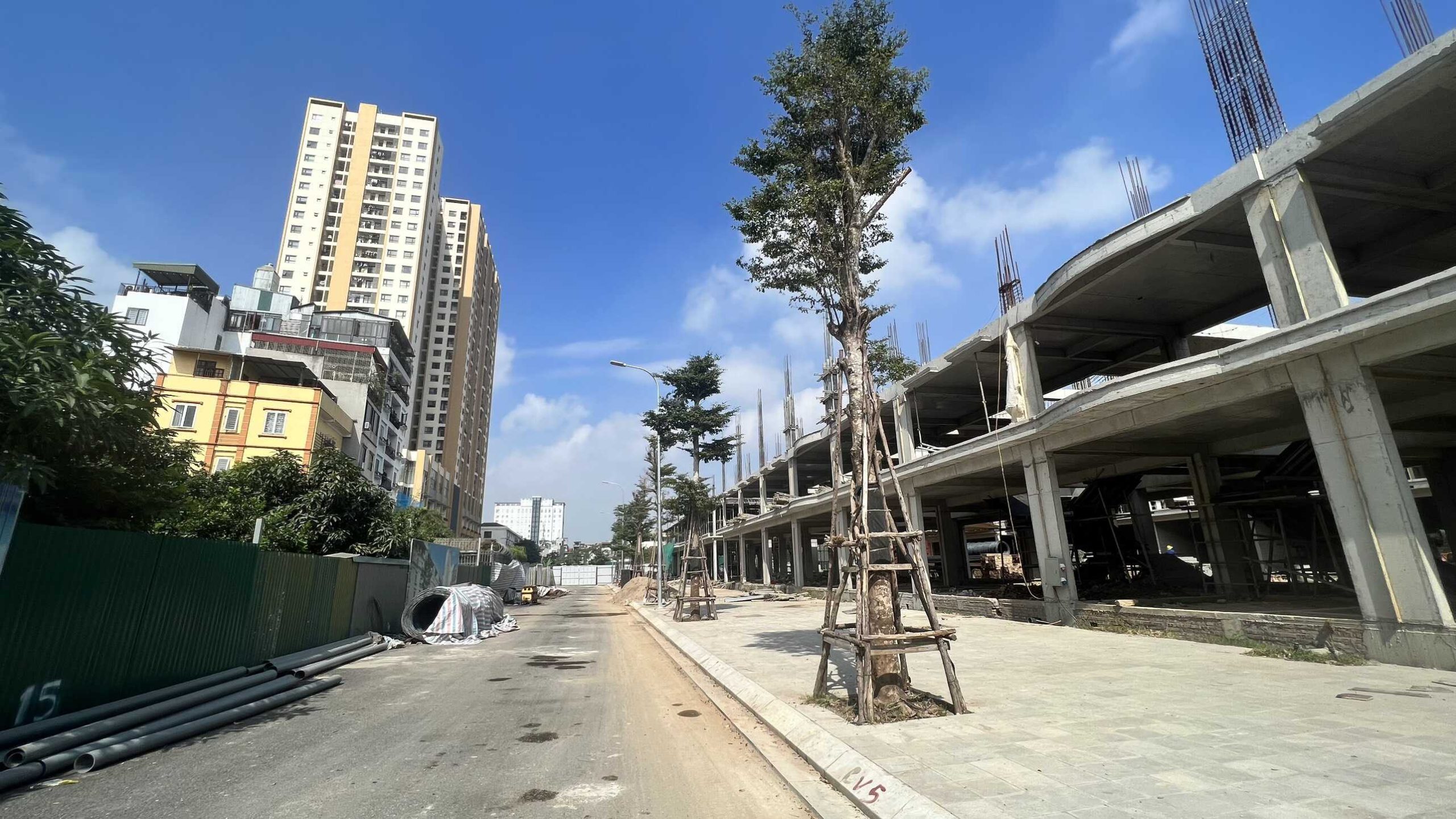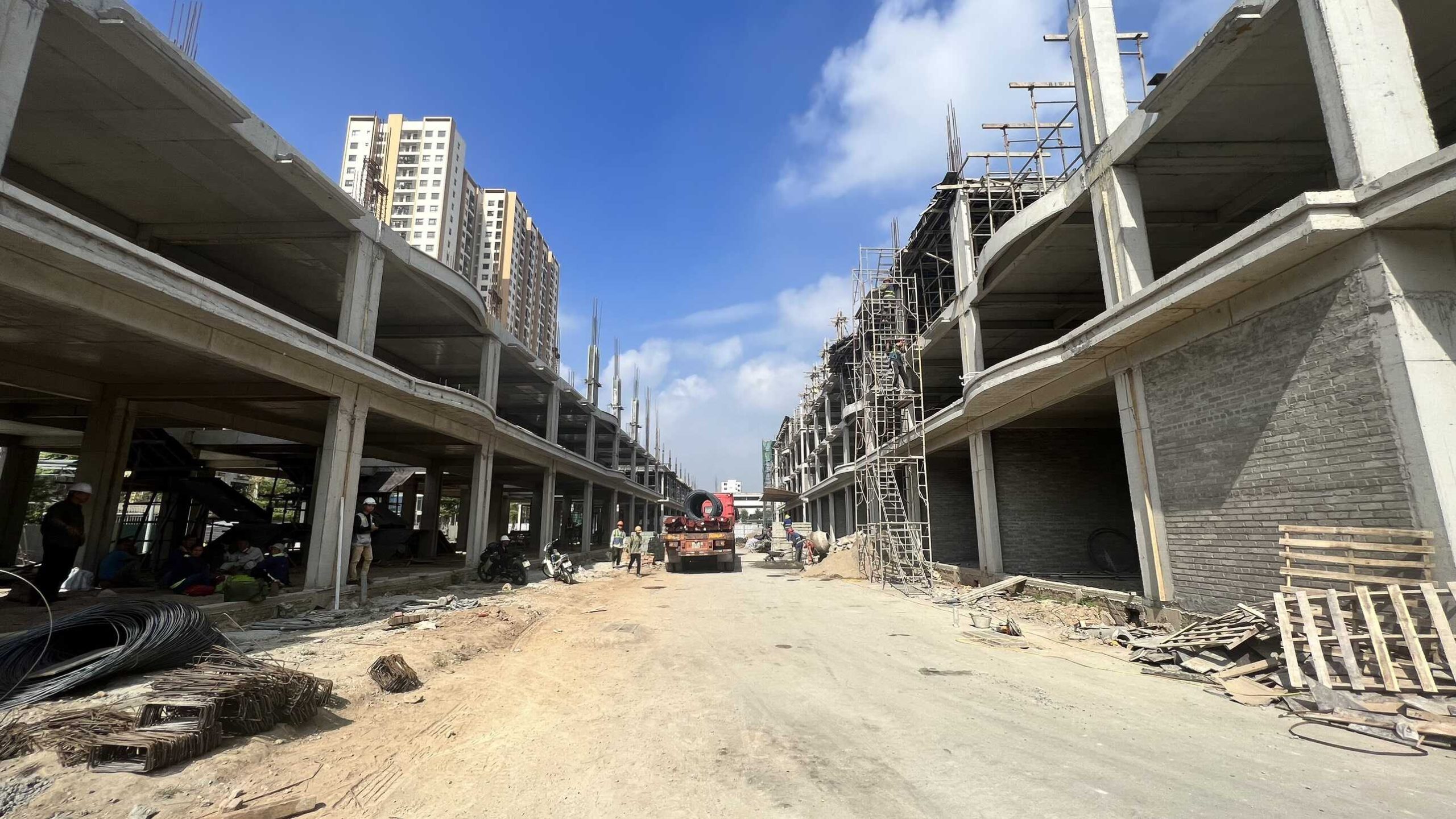 Khối Shophouse và Liền kề đã đổ sàn tầng 2, một vài điểm đã đổ sản tầng 3. Hệ thống giao thông trong dự án đã hoàn thiện điện nước ngầm và lát vỉa hè